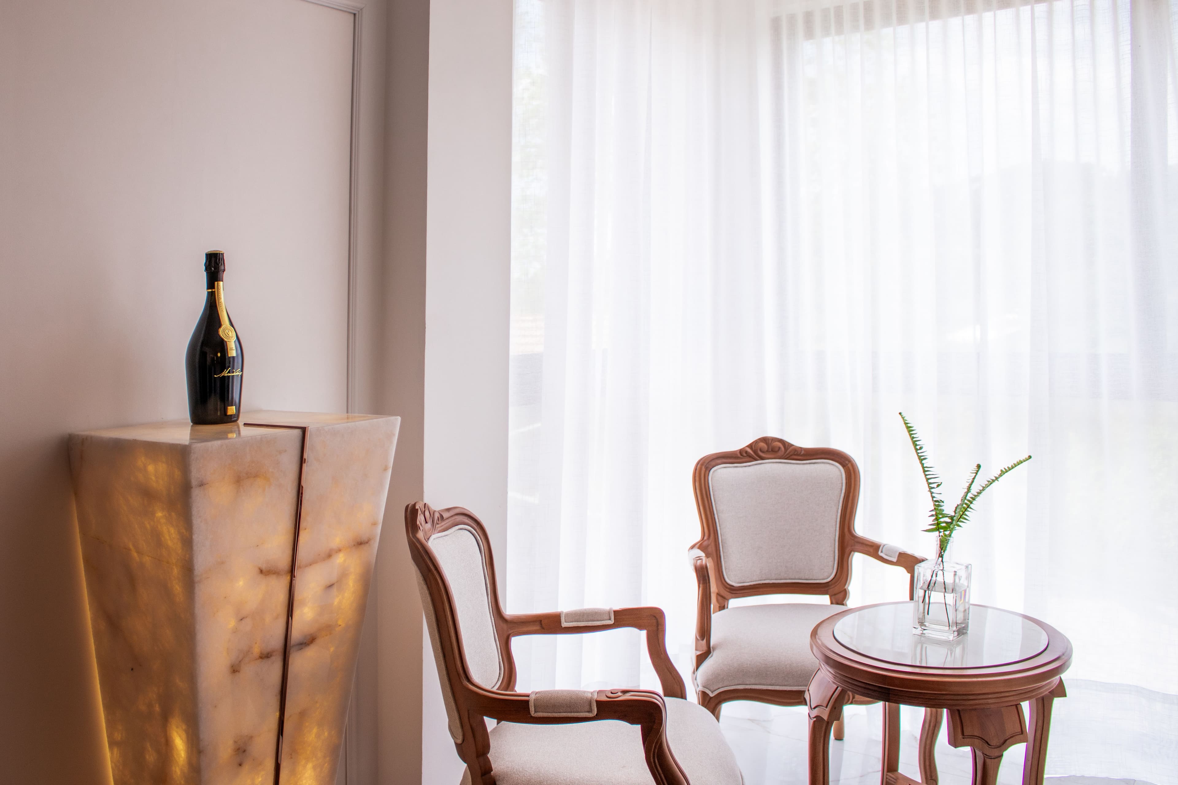 Inspirada na nossa linha de espumantes Premivm, possui design moderno em tons de espumante e elementos clássicos, oferecendo uma experiência luxuosa e sofisticada.